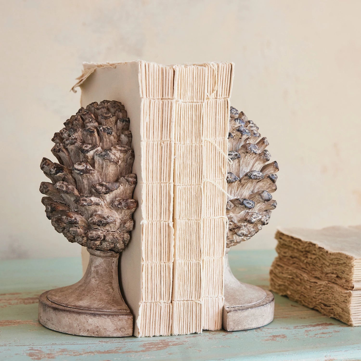 Resin Pinecone Shaped Finial Bookends, set of 2